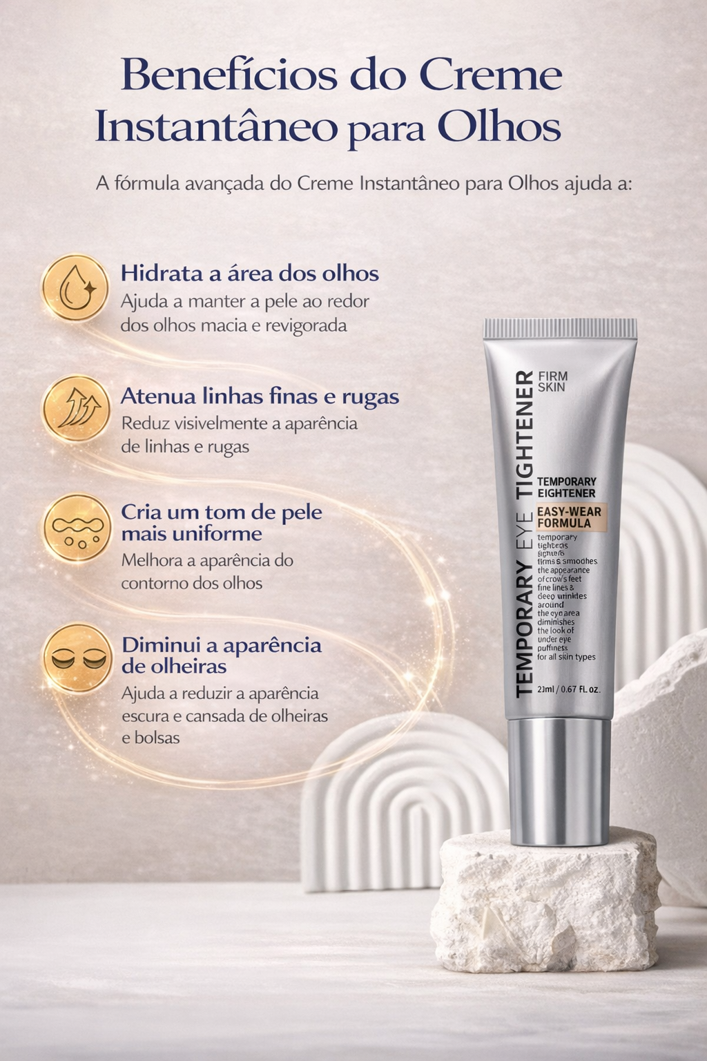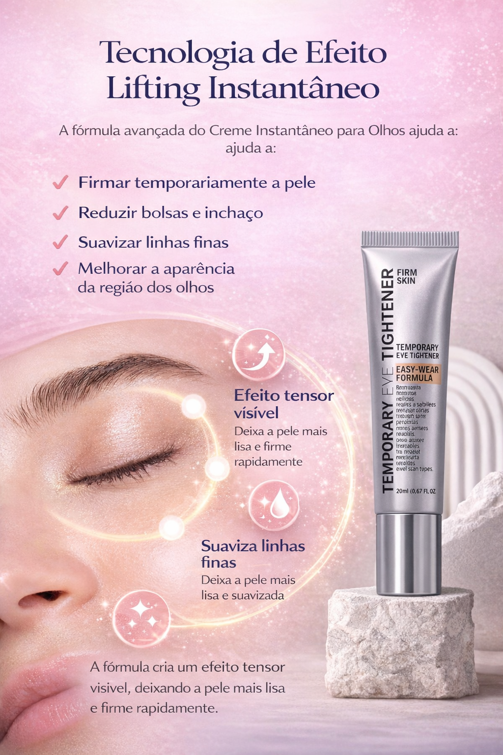 O Creme Instantâneo para Olhos Vellura™ foi desenvolvido para proporcionar um efeito lifting imediato, ajudando a reduzir bolsas, suavizar linhas finas e devolver uma aparência mais jovem e descansada.
