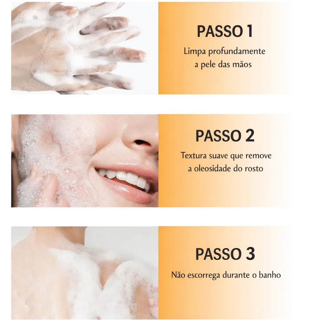 Enriquecido com cúrcuma, este sabonete proporciona uma limpeza suave e eficaz, removendo impurezas sem agredir a pele. Sua fórmula hidratante ajuda a manter a maciez e o brilho natural, enquanto a textura leve e não pegajosa garante enxágue fácil, sem resíduos. Indicado para todos os tipos de pele, é ideal para quem busca uma aparência saudável e revitalizada, com praticidade para o uso diário e em viagens.